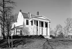 An example of Federal-style and Greek-revival architecture,[4] the main structure was built by Thomas Armat in 1801 and expanded in 1810. The Greek portico was built in 1830.[5] The house stands on one of the highest Native American Mounds (the Lenni Lenape )overlooking Philadelphia and the Delaware River from Germantown. During and after the Battle of Germantown many wounded soldiers were carried to the top of the hill where Loudoun now stands.[5]
