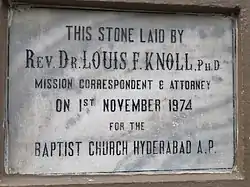 Louis F. Knoll (died 2004) was an American Baptist missionary[6] who taught Christian Ethics at the Andhra Christian Theological College, Hyderabad, affiliated with the Senate of Serampore College (University).