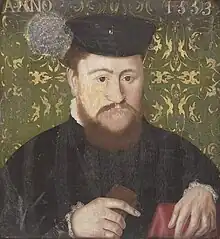 Louis de La Trémoille, 1st Duke of Thouars (1521 – 25 March 1577) was a sixteenth-century French nobleman of the La Tremoille family. He was the son of François II de La Trémoille and his wife, Anne de Laval. Louis accompanied the dauphin on a voyage to Perpignan in 1542, served in the war against the English in Picardy and was one of the four barons given as a hostage of the Holy Ampoule at the consecration of Henry II, and one of the hostages of the peace treaty concluded in 1542 between France and England. In 1563 his title was raised to a dukedom.