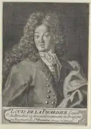 Pivardière was born in the Berry on 15 November 1661 to Antoine de la Pivardière and his second wife, Marie de Berthoulat.[2] He was not in a position to take advantage of his inherited nobility, and the first two decades of his life are marked by attempts to make a name for himself in the military. The reigning Louis XIV's territorial ambitions gave him many chances to do so. He served in the Franco-Dutch War and, several years later, fought in the Battle of Chiny. Regardless, he was unable to advance in the military. In 1687, he married Marguerite Chauvelin and became seigneur de Narbonne, the Chauvelin family estate.[3] He and his wife had a daughter in 1688, but soon after the Nine Years War began and Pivardière again served in the military. The war went catastrophically for France and Pivardière yet again could not advance in the military, despite years of trying. By 1697, his ambition had nearly emptied his coffers.[4]