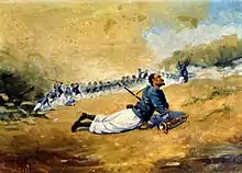 During the 1863 Gettysburg Campaign, Hays's Brigade played a crucial role in the Confederate victory at the Second Battle of Winchester, seizing a key fort and forcing the withdrawal of Union troops under Maj. Gen. Robert H. Milroy. During the subsequent invasion of southern Pennsylvania, much of the populace feared the thievery and drunkenness often associated with the colorful Louisianans.[17] At the Battle of Gettysburg, Hays's Brigade stormed East Cemetery Hill on the second day and seized several Union artillery pieces before withdrawing when supporting units were not advanced.