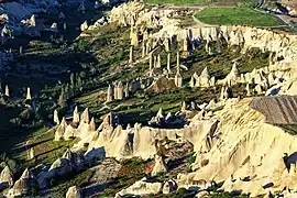 Love Valley, (Turkish Aşıklar Vadisi) is a valley in Göreme Historical National Park, Cappadocia, Turkey. It is known for its rock formations called fairy chimneys.