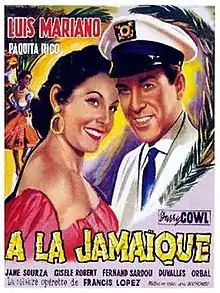 Love in Jamaica (French: À la Jamaïque) is a 1957 French musical comedy film directed by André Berthomieu and starring Luis Mariano, Jane Sourza and Paquita Rico.[1] It is an operetta film, adapted from a stage work composed by Francis Lopez.