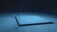 Taylor Cohen and Matty Peacock directed the music video for "Lovely".[37] It was uploaded to Eilish's official YouTube channel on April 26, 2018.[38][39][40] The video opens with Eilish trapped inside a crystalline box.[41] Khalid then appears out of thin air behind her, wearing matching black threads and silver chains as he sings with her.[39][42] Eilish and Khalid start to wander wearily around the box. A single rain cloud then unleashes rain and thunder.[43][44] The singers sometimes separate, but manage to find their way back to each other.[42] The rain from the cloud begins to freeze in the box and ice covers the walls as Khalid and Eilish hold each other. But as the video moves towards its end, the ice melts to reveal the box is empty.[43] Eilish created the video's concept wanting to portray the feeling of being hopelessly trapped with another person.[40][45]