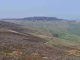 The summit is adorned by a fair-sized cairn and a stone-built chair, and gives good views of the Yorkshire Three Peaks to the south. 300 metres west of the summit are a series of stone cairns which are clearly visible on the skyline when the fell is viewed from a distance.