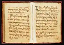 The Rebellamentu covers the years 127982 and treats John of Procida as a hero.[6] It is also the earliest chronicle to record that violence broke out after a Sicilian woman was raped by a French soldier, a story also recorded by Atanasiu di Iaci elsewhere.[7] It says that when the Sicilians complained to Charles of Anjou about their high taxes, he responded, "Vi farro spendiri munita di soli, como altra volta havitu spisu,"[8] threatening that he would re-issue leather money as had been done in the past. This probably indicates that the legend that William I issued leather money, otherwise first recorded by Tommaso Fazello in his De Rebus Siculis (1558), was current in the late thirteenth century.[9] The Rebellamentu also makes the Orsini Pope Nicholas III party to a conspiracy to dethrone Charles of Anjou.[10] The Florentine chronicler Giovanni Villani, who was biased against the Orsini because of the legation of Napoleone Orsini to Florence in 1306, supports the allegation.