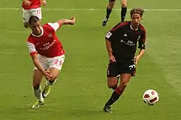 His valuable performances also persuaded the club to offer him a contract extension until 2014, which was signed on 11 February 2010.[16][17] He finished his second year at Milan on a high, scoring his first goal for the Rossoneri in the last match of the season, a home game against Juventus, on 15 May 2010.[18]