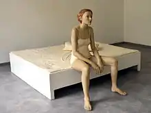 She soon realized that abstraction limits her possibilities of expression and returned to figure sculpting. The hyper-realistic, life-size polyester figure "Hanna" (final work for master class at the HfBK 1973) marked out the future direction of her sculptural works. The effect of her figural sculptures was often intensified by environment installations: Scream 1976, On Edge 1977, Outside the Door 1980 and others.