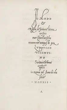 Ludovico Vicentino degli Arrighi (Cornedo Vicentino, 1475?–1527?) was a papal scribe and type designer in Renaissance Italy.