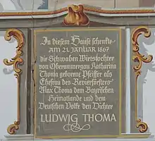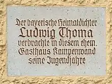 Memorial plaque for Ludwig Thoma at the former inn Zur Kampenwand in Prien, today the Ludwig Thoma Grammar School