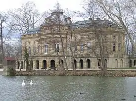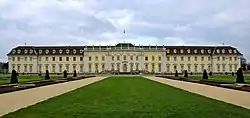 The origins of Ludwigsburg date from the beginning of the 18th century (1718–1723) when the largest baroque castle in Germany, Ludwigsburg Palace was built by Duke Eberhard Ludwig von Württemberg. Originally, the Duke planned to just build one country home (albeit a palace), which he began building in 1704. However, the examples of other princes fostered a desire to project his absolutist power by establishing a city. To the baroque palace, he added a hunting lodge and country seat, called Schloss Favorite (1713–1728), and the Seeschloss (castle on the lake) Monrepos (1764–1768).[4]