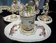 Ludwigsburg porcelain is porcelain made at the Ludwigsburg Porcelain Manufactory founded by Charles Eugene, Duke of Württemberg, on 5 April 1758 by decree as the Herzoglich-ächte Porcelaine-Fabrique. It operated from the grounds of the Baroque Ludwigsburg Palace. After a first two decades that were artistically, but not financially, successful, the factory went into a slow decline and was closed in 1824. Much later a series of other companies used the Ludwigsburg name, but the last production was in 2010.[2]