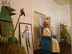 His most notable works, including mezzotint and acrylic paintings, are of human figures with anthropomorphic animal masks. Their costumes reveal rather than conceal their true identities.