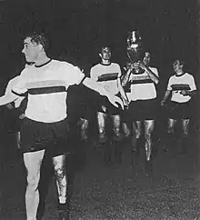 In May 1967, Suárez was forced to miss the European Cup final against Celtic due to an injury, being subsequently replaced by Mauro Bicicli:[55] Inter eventually suffered a 2–1 defeat.[56][57] In the following weeks, the Italian club also missed out on their third national title in a row on the last day (in favor of Juventus),[58][59] and got eliminated by Padova in the Coppa Italia semi-finals: as a result, they finished the campaign without winning a single trophy.[60]