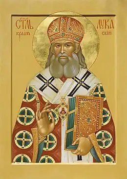 Luke of Simferopol[2][3], also known as Saint Luke the Blessed Surgeon, born Valentin Felixovich Voyno-Yasenetsky (Russian: Архиепи́скоп Лука́, Валенти́н Фе́ликсович Во́йно-Ясене́цкий; 9 May [O.S. 27 April] 1877 – June 11, 1961) was a Russian surgeon, the founder of purulent surgery, a spiritual writer, a bishop of the Russian Orthodox Church, and archbishop of Simferopol and the Crimea from May 1946. He was a laureate of the Stalin Prize in medicine in 1946.