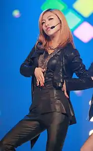 In 2006, SM Entertainment recruited Luna after seeing her perform on the SBS television program Truth Game.[7] She later debuted as the main vocalist and lead dancer of South Korean girl group f(x) in September 2009. Outside the group's activities, Luna also made several solo appearances. In 2010, she appeared as a regular member of Star King and earned a Newcomer Award from the SBS Entertainment Awards for her appearance and effort.[8] Later that year, Luna recorded the song "Let's Go" alongside labelmates Sungmin, Seohyun, and Jonghyun, for the purpose of increasing public participation in the 2010 G-20 Seoul summit.[9] She released a duet with Super Junior's Yesung entitled "And I Love You" for the soundtrack of the KBS2 drama The President and a solo single "Beautiful Day", which served as the OST for the drama Please Marry Me.