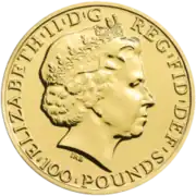 The reverse design features a crowing rooster amongst ten sea thrift flowers, the number ten symbolising of perfection in Chinese culture.[5] Lettering on the coin reads "YEAR OF THE ROOSTER · 2017"A plus details of the mass and metal content of the coin. The Chinese character for Rooster (雞) is displayed near the coin's centre. Unlike the previous coins in the series, the 2017 coin breaks the otherwise uniform smooth obverse design, opting for an obverse similar to that of the Britannia coin series.[6]