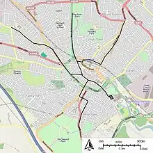 The complete system opened in 1908, and had five routes originating at the Town Hall:[1]