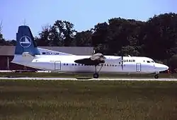 The aircraft involved in the crash was a Fokker F50, manufactured in 1991 with a serial number of 20221. The aircraft was delivered to Luxair on the same year with a registration of LX-LGB. Equipped with PW125B engines and two Dowty propellers, it had accumulated a total of 24,068 flight cycles. According to Luxair, the aircraft had been maintained properly. The last service was conducted on 4 May. The maintenance logbook indicated that the last defect, an inoperative anti-skid system on the aircraft, had been rectified on 5 November, one day before the accident.[3][4]