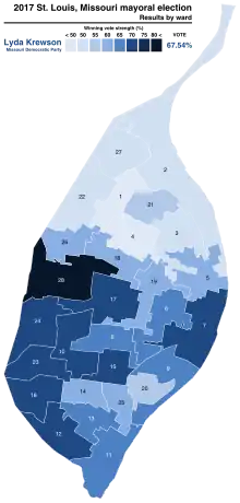 - ↑ "Democrat Lyda Krewson declares victory in St. Louis mayoral race". FOX2now.com. April 5, 2017. Retrieved April 11, 2017.