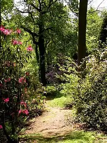 The current garden was developed after 1950 by the second Viscount Bledisloe and his family. Betty Fairfax Horsfall was also a involved in the re-design of many areas.[3] There is a woodland garden running along a secluded valley, planted with magnolias, rhododendrons, azaleas and other flowering shrubs. There is a paved terrace above and formal gardens which are popular in the Spring, when the daffodils bloom.