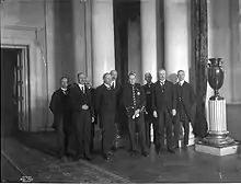 The ministers of Lykke's Cabinet with Crown Prince Olav at the Royal Palace in Oslo.