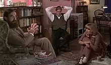 Jonathan Pryce as Strachey, Steven Waddington as Ralph Partridge and Emma Thompson as Dora Carrington in the film Carrington