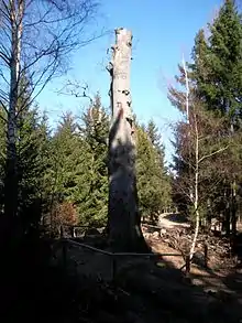 The Mönchsbuche is an old beech tree in the Harz Mountains of Germany that has been designated as a natural monument due to its age and the stories surrounding it. It stands on a ridge near Hasserode in the borough of Wernigerode, on an old way between the abbeys of Himmelpforten and Ilsenburg and is reputedly where the monks used to stop and rest. In March 2011 the top of the old tree, that is over 100 years old, was removed in order to save it from breaking apart.[1]