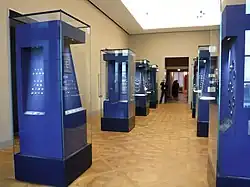 The Münzkabinett exhibition shows around 3,300 objects, including rare and unique items, which represent a cross-section of the various parts of the collection.[1] They are presented in four chapters (rooms). For research work, the collection has a library of some 30,000 volumes. The library and a study room are open to the public.[1]