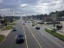 M-11 is maintained by the Michigan Department of Transportation (MDOT) like other state highways in Michigan. As a part of these maintenance responsibilities, the department tracks the volume of traffic that uses the roadways under its jurisdiction. These volumes are expressed using a metric called annual average daily traffic, which is a statistical calculation of the average daily number of vehicles on a segment of roadway. MDOT's surveys in 2010 showed that the highest traffic levels along M-11 were the 41,214 vehicles daily between Kalamazoo and Breton avenues in Grand Rapids; the lowest counts were the 8,153 vehicles per day in Ottawa County.[7] All of M-11 has been listed on the National Highway System,[8] a network of roads important to the country's economy, defense, and mobility.[9]