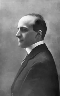 Michel-Dimitri Calvocoressi was born in Marseille, France on 2 October 1877 to Greek parents.[3] In his earliest years he learned Greek, Italian, English and later German; he noted that "I read far more English books than French."[4] At the École Monge high school of Paris, he developed a lifelong interest in geology and mineralogy.[4] The musicologist Gerald Abraham notes that Calvocoressi had "a number of false starts at other careers: law, banking and stockbroking".[4] At first, he studied at the Lycée Janson de Sailly, Paris, but inspiration from an Orchestre Lamoureux concert of Richard Wagner's works galvanized his interest in music.[4][lower-alpha 1]