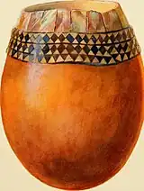 In 1931, M. Louise Baker traveled to New Orleans, where she painted Maya material at Tulane University's Middle American Research Institute. Next she traveled to Mérida, Yucatán, in Mexico, and painted and drew Maya pottery in the State Museum and private collections. Next she traveled to Guatemala City, Guatemala, to make ink and watercolor illustrations of pots from the Carnegie Institution of Washington expedition to Uaxactun and from Cobán, held in the private collection of Erwin Paul Dieseldorff. Her paintings and illustrations of Maya pottery were subsequently published by the University of Pennsylvania Museum between 1925 and 1943 in several volumes of Examples of Maya Pottery in the Museum and Other Collections;[2] several others appeared in the second volume of E.P. Dieseldorff's Kunst und Religion der Mayavölker (1931).[14][15] Still others have been more recently reproduced.[16] [17]