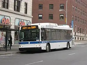 The Forty-second Street, Manhattanville and St. Nicholas Avenue Railway opened the Boulevard Line in 1884 or 1885, following the 42nd Street Crosstown Line from the East 34th Street Ferry along First Avenue (trackage rights over the Central Park, North and East River Railroad's East Belt Line) and 42nd Street to Times Square, using new trackage on Broadway (then Boulevard) to 125th Street, and turning west on 125th Street over the tracks of the One-Hundred and Twenty-Fifth Street Railroad's 125th Street Crosstown Line to the Fort Lee Ferry.[3] The Third Avenue Railroad acquired control of the line in November 1895,[4] and the Metropolitan Street Railway leased the Third Avenue in May 1900.[5] After cable cars stopped running on the Metropolitan's Broadway Line in 1902, the Third Avenue's line was rerouted to continue south on Broadway from Times Square on the Metropolitan's trackage, ending at Houston Street.