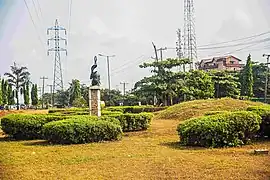 The MKO Abiola Park is a public park located at the Ikododu Road - Lagos/Ibadan Expressway Interchange in Ojota, Lagos. The green space was named after the Late Nigerian Politician and Philanthropist MKO Abiola.[1] The park has a wide green landscape, some monuments and seats for relaxation. In June 2018, a 46 feet statue of MKO Abiola was situated in the park to honor his cause.[2]