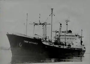Toyvo Antikaynen (Russian: Тойво Антикайнен) was a merchant ship of Black Sea Shipping Company (Soviet Union), tweendecker type general cargo ship, project B401. This ship is one of the Kommunist-class cargo ships.[2] The ship was named in honor of the Finnish communist leader and the Red Army officer Toivo Antikainen.