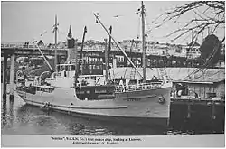The North Coast Steam Navigation Company's then new motor ship left Sydney on the afternoon of Tuesday 13 September 1927 on her maiden voyage in the coastal trade. She was the first motor ship to be employed on the New South Wales coast, and ran between Sydney and the Clarence River.[3]