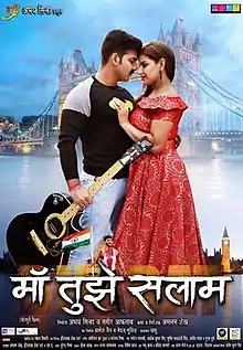 Maa Tujhe Salaam is a 2018 Indian Bhojpuri-language romance film directed by Aslam Sheikh and produced by Abhay Sinha & Samir Aftab. Pawan Singh is in lead role and Madhu Sharma and Akashra Singh in his opposite.[1][2][3][4][5] While Surendra Pal, Prakash Jais, Sameer Aftab, Ayaz Khan, Manoj Tiger, Brijesh Tripathi and others in supporting roles.