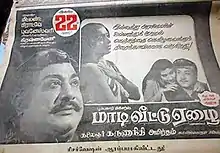 In 1966, M. G. Ramachandran and J. P. Chandrababu came together for a film titled Maadi Veettu Ezhai, to be directed by the latter. Although the film began shooting, it was shelved due to differences between the two.[3] An unrelated film was later made with the same name, written by M. Karunanidhi and starring Sivaji Ganesan.[4]