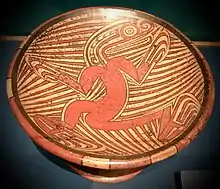 A Macaracas style Coclé bowl, from around 800-1000 AD. The background design is stingray spines.