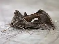 Macdunnoughia confusa (Dewick’s plusia) is a moth of the family Noctuidae. It was first described by James Francis Stephens in 1850. It is found from Europe through Siberia to Japan and is also present in Lebanon and Israel.