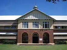 Further, the Mackay Central State School, is significant as one of the best examples of a purpose-built Intermediate School, the purpose for its use being clearly expressed in the fabric of the building, with the domestic science section located in the eastern wing and the manual arts section located in the western wing.[1]