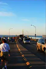Starting in 2017, all vehicular traffic on the bridge as well as shipping and boating below, is stopped during the duration of the event.[1] The 2020 edition of the walk was cancelled as a result of the COVID-19 pandemic; the bridge authority cited logistical hurdles and falling toll revenue as reasons for the cancellation.[2]