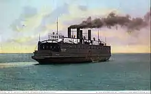 That led MTC to order a purpose built icebreaking rail ferry named SS St. Ignace from the Detroit Dry Dock Company in 1887.[1][2] St. Ignace was built with a propeller at her bow to break ice ahead of the hull, and entered service in April 1888.[2] Her capacity of ten railcars proved to still be inadequate for traffic, and a similar, albeit larger, vessel named SS Sainte Marie with a capacity of eighteen railcars entered service in June 1893.[2]