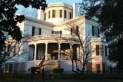 Hubble House, a mansion with Corinthian columned portico on College St. between Walnut and Georgia Sts.