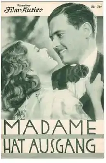 Madame Makes Her Exit (German: Madame hat Ausgang) is a 1932 German romantic comedy film directed by Wilhelm Thiele and starring Liane Haid, Hans Brausewetter, Hilde Hildebrand. It was shot at the Epinay Studios of Tobis Film in Paris. It premiered on 12 January 1932.[1] A separate French-language version Amourous Adventure was also released, directed by Thiele with a largely different cast.