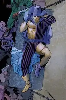 Madcap exercises his power at Grand Central Station. By the time Ghost Rider arrives, the entire station is rampant with people murdering each other and killing themselves. Ghost Rider saves whomever he can, then beats Madcap and subjects him to the Penance Stare. Madcap feels all the pain he has caused his victims and likes it: it is the first real sensation he has felt in some time, and he vows to continue, in order to experience the Stare again.[11] He later tries to escape from the Vault, a prison for superhumans and is stopped by Citizen V.[12]