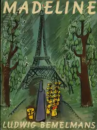 Madeline is a 1939 book written and illustrated by Ludwig Bemelmans, the first in the book series of six, later expanded by the author’s grandson to 17, which inspired the Madeline media franchise. Inspired by the life experiences of its author/illustrator, the book is considered one of the major classics of children's literature through the age range of 3 to 8 years old.[1][2] The book is known for its rhyme scheme and colorful images of Paris, with an appeal to both children and adults.