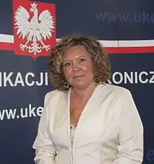 Gaj also contributed to the facilitation of telephone number transfer between exchanges, and introduced legislation related to fraudulent SMS lotteries.[2] She also directed a task force on "Digital Poland", facilitating broadband take-up.