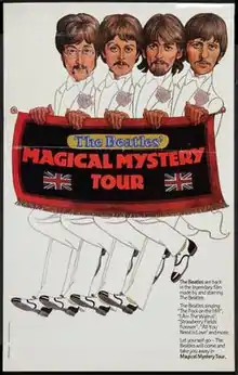 Magical Mystery Tour is a 1967 British made-for-television musical film written, produced, and directed by and starring the Beatles. It is the third film that starred the band and depicts a group of people on a coach tour (including the band members) who experience strange happenings caused by magicians (also played by the band as well as road manager Mal Evans). The premise was inspired by Ken Kesey's Furthur adventures with the Merry Pranksters and the then-popular coach trips from Liverpool to see the Blackpool Lights. Paul McCartney is credited with conceptualising and leading the project.