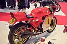Magni offered a range of parts to upgrade MV fours. They also manufactured complete motorcycles using the parts. The specification varied from customer to customer.[22] Amongst the options were big-bore kits to bring the capacity up to 837 cc (as used on the MV 850 SS Monza),[23] Dell'Orto carburettor kits,[24] exhaust systems, drive chain conversions,[5] the lightweight Magni frame, which was based on Magni's design for the F750 S Imola racer,[5] EPM wheels, 4ls drum brakes and Brembo disc brakes.[25]